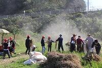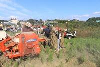 5日(火)に、5年生は稲の脱穀を行いました。10月8日(火)に稲刈りして天日干した稲を、子どもたちは脱穀機に運んだり、一粒の残さないようにと落ちた稲穂を一つ一つ拾ったりしていました。みんなが一生懸命に頑張ったおかげで、予定していた時間より早く脱穀を終えることができました。