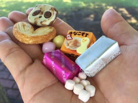 子どもたちが、お菓子をこんなに(手にのりきれる分だけ載せてます)もらいました!