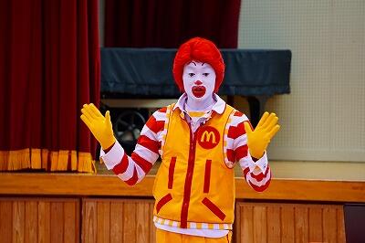 「ドナルドの防犯教室」という名前の通り、マクドナルドのドナルドが、本校に来て指導をしてくれました。