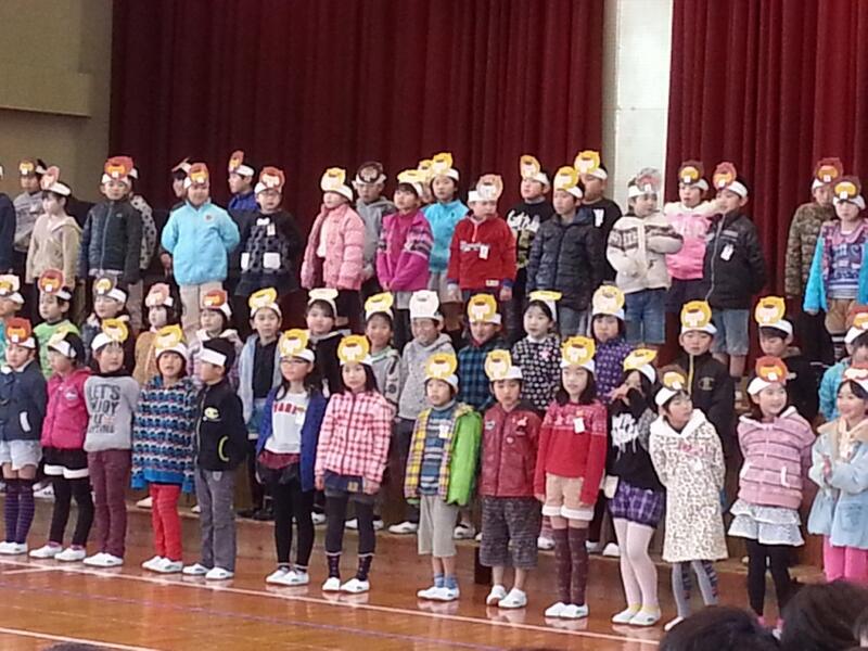 2学期に学習した「ビーバーの大工事」の朗読と「ビーバーのダム」というビーバーについての歌を発表しました。