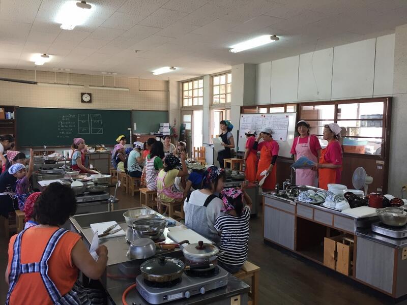 食生活改善委員さんの指導の下、夏野菜の食材を使って料理を作りました。