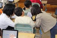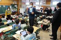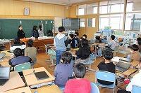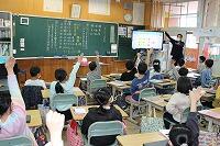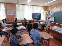 1年生では、タブレットを使うときのルールやマナーなど情報モラルについての学習でしたが、子どもたちは気付いたことを積極的に発表しながら、大切なポイントを一つ一つ確認していました。