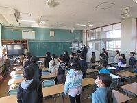 22日(金)は、2学期の終業の日でした。終業式は、感染症対策としてオンライン形式で行われ、1年生代表の女子児童が2学期に心に残ったことや3学期の目標を元気よく発表してくれました。教室では、子どもたちはテレビ画面を見ながら、代表児童や先生の話をしっかりと聞いていました。最後の校歌斉唱では、6年女子児童の音楽室からのピアノ伴奏に合わせて、子どもたちの元気のある大きな歌声が学校中に響き渡っていました。