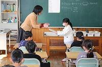 また、4年生では、算数の時間に倍の意味について学習していました。子どもたちは、2つの数を比べて何倍になっているのか自分で考え、友だちに丁寧に教えていて、教えてもらった子どもからは「よし!」という嬉しそうな声が聞こえていました。