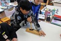 16日(火)に6年生は理科で「てこの働き」を学習していました。てこをどのように使えば、重い物を小さな力で持ち上げることができるかという課題を解決するために、実際に重い物を持ち上げたり、釘抜きで釘を抜いたりと体験活動を行っていました。子どもたちは、支点や力点、作用点の位置を変えることで、軽くなったことを体験的に理解しているようでした。