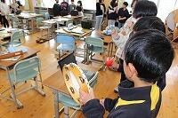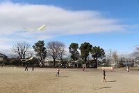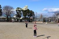 22日(月)に、1年生は生活科の時間に「昔の遊び」を体験しました。子どもたちは、自分で絵を描いた凧に糸を結び付け、運動場で凧あげをしましたが、凧があがると子どもたちは大喜びでした。