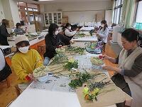 講師の「spasiva(スパシーバ)」様から花の種類や配置の仕方、飾る籠の作り方など様々なアドバイスをしていただきながら、楽しく活動することができました。