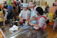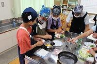 27日(月)に、6年生は家庭科で調理実習をしていました。子どもたちは、人参やピーマン、キャベツなどを細かく切ったり、卵をかき混ぜたりしながら、野菜炒めとスクランブルエッグを作っていました。普段、料理の経験があまりないのか、野菜をどうしたら上手く切れるか、試行錯誤しながら取り組んでいました。