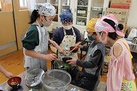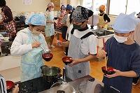 だし汁の中に味噌を溶くと、大豆本来の香りが家庭科室中に広がり、子どもたちから「美味しそうな匂いがする」「早く食べたい」という声が聞かれました。