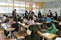 授業では、五十市中学校や今町小学校の先生方、本校職員が参観しましたが、子どもたちは緊張することなく、元気よく挙手したり、発表したりするなど普段どおりに頑張っていました。また、どの授業もタブレットで考えを共有したり、学習内容の確認をしたりとICTを効果的に活用していて、学年が上がるにつれて、入力など活用スキルの向上も見られました。