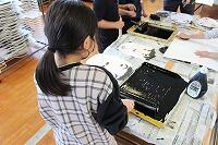 また、5年生と6年生は図工で版画づくりをしていました。5年生では、暦の入った用紙に印刷してカレンダーを作っていて、思い出としても大切に残していきたい作品となっていました。6年生では、色版画を作っていて、子どもたちは、板に1色ずつ塗っては刷る作業を地道に繰り返して、色鮮やかな作品を仕上げていました。