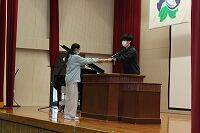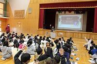 10日(月)に、1・2・4・5年生は、交通安全教室が体育館で行われました。交通安全協会の方々から、道路にひそむ危険や歩いたり、自転車に乗ったりするときに気を付ける点など話をしていただきました。子どもたちはしっかりと話を聞き、指導員さんの問いかけにも元気よく答えたり、手を挙げたりしていました。