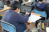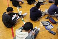また、2年生では、スポーツテストの結果をタブレットを使って入力して、自分の体力を知って体力アップをめざすための学習に取り組んでいました。保護者の方々が子どもたちに寄り添って一緒に確認しながら入力していました。
