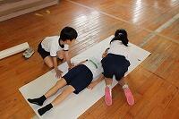 30日(火)に、2年生の子どもたちが多目的ホールで模造紙の上に寝転がっていました。何をしているのか聞いてみると、模造紙に等身大の絵を描いて、そこに2年生になって自分が成長したことや自分のよさをシールに書いて貼っていく活動をしているところでした。成長やよさは、自分の気付きであったり、保護者から言葉をいただいたりしたものを貼っていくそうです。