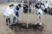 これから春になると美しい花が咲き、白色とピンク色のコントラストが校庭に花を添え、未来の五小っ子たちを楽しませてくれることと思います。植樹した6年生たちもモクレンと同じように、立派に成長して地域のために、人のために貢献できる社会人になってほしいと願っています。