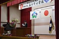 五十市小学校には、「ISO1」という学校名にちなんだスローガンがあります。「I」は、相手の目を見て、「S」は、先に、「O」は、大きな声で、「1」は、一番のあいさつで、元気よく気持ちのよいあいさつをしようというものです。