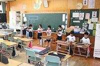 隣のクラスでは、リズムに合わせて「ひらがな」を読む練習をしていました。子どもたちは、教科書を指さしながら、テンポよく大きな声で読んでいました。