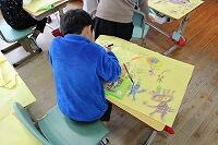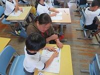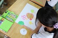 5日(水)に、1年生は図工の時間に絵の具と筆を使って、線の描き方や色の使い方を学習していました。くるくる、ぎざぎざ、すいすい、てんてん、なみなみなどの線の描き方で、いろいろな形や色を考えながら楽しそうに描いていました。