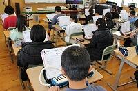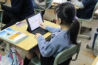 また、社会科や国語科では、タブレットを使って調べ学習をしたり、自分の考えをまとめたりしていました。6年生ともなると操作に慣れていて、入力もスムーズで上手に使いこなしていました。