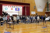 また、終業式後の学級活動では、担任の先生から2学期の子どもたちの頑張りや冬休みの過ごし方についての話があり、最後に通知票が一人一人に手渡され、子どもたちはドキドキ、ワクワクしながら通知票を見ていました。明日から子どもたちが楽しみにしている冬休みとなります。子どもたちには、きまりをしっかり守って楽しい冬休みにしてほしいと願っています。
