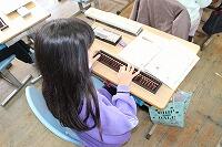 15日(月)に、5年生は国語科で方言と共通語の違いについて学習していました。子どもたちは、「こえ(辛い)」「さみ(寒い)」など自分たちが住んでいる都城には、どんな方言があるか調べていました。子どもたちにとっては、おじいちゃんやおばあちゃんとの会話の中で聞いたことはあるようですが、普段の生活の中でなかなか使うことのない言葉ばかりで、興味深そうに調べていました。