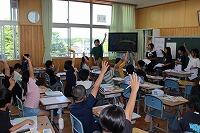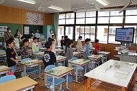 また、6年生は、暑い中、体育館で保護者と一緒にSNSの使い方などなど情報モラルについて学習していました。どの学年も多くの保護者の方々に参観していただくことができましたが、子どもたちは緊張せず、いつもどおり頑張って取り組んでいました。