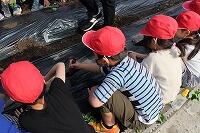 予定時刻よりも早めに田植えが終わったため、米作りについて子どもたちから尾藤さんへの質問タイムが設けられ、子どもたちから稲のことや米作りの苦労などたくさんの質問が出ました。その中で「なぜ、田んぼを貸そうと思ったのですか。」という質問があり、尾藤さんは、退職されてから地域のために何かできないか、地域の子どもたちのためにという思いでボランティア活動として始められたと話されました。