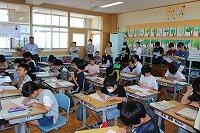 24日(水)に、五十市地区小中一貫教育授業研究会が本校で行われました。本校では、自ら学びに向かう子どもの育成を目指して、教科等別に4つのメンター班で学力向上に向けた授業改善を行っています。そこで本日は、各班で研究授業(1年4組国語、3年1組算数、3年2組社会、5年4組学級活動)を行いました。