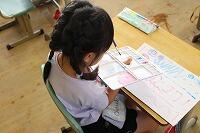 31日(金)に、1年生は国語科で「ひらがな」の学習をしていました。子どもたちは、「せ」と「な」を書き順に気を付けながら、丁寧に書いていました。子どもたちは、鉛筆も上手に握れるようになり、姿勢もよく、この2か月で大きく成長しました。