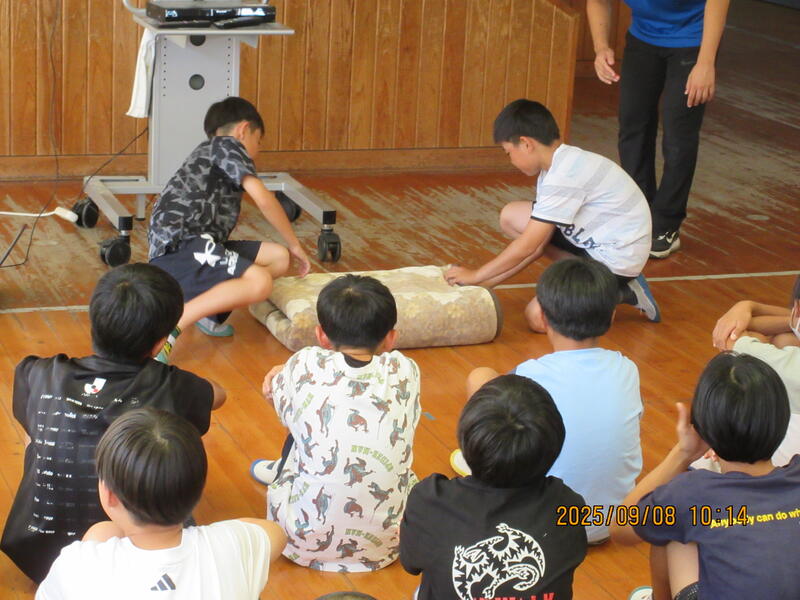 5年生では、9月18日、19日に予定されている宿泊学習に向けた事前学習が行われていました。宿泊学習に向けた心構えや毛布のたたみ方など、具体的な事前学習が行われていました。