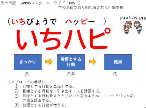 実は、この「いちハピ」の取組は、スクールワイドPBS(全校で取り組む肯定的な行動支援)の流れに沿っての取組でもあります。