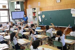 1年生が国語の時間に、元気いっぱいにカタカナの学習に取り組んでいました。