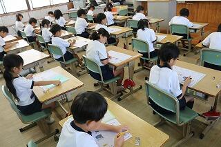 8月29日(金)に、地震発生を想定した避難訓練を行いました。子どもたちは、地震発生の放送が流れると一斉に机の下で身を守り、避難の際もルールを守って落ち着いて運動場に移動することができました。そして、教室に戻り、各学級で避難訓練の振り返りを行ないました。