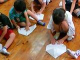 振り下ろすと「パンッ!!」と音がする「紙鉄砲」の作り方も教えてもらいました。