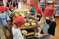 子どもたちは、新しいスタイルで給食当番の活動に一生懸命取り組んでいます。