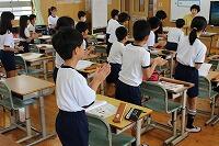 また、式後は、生徒指導主事の先生から、子どもたちが交通事故や水の事故に遭わないように注意することやインターネットの正しい使い方など夏休みの過ごし方について話があり、子どもたちは、しっかりとした態度で話を最後まで聞いていました。