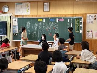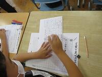 5年生の教室で国語の研究授業がありました。文章の要旨をまとめる学習でした。要旨をまとめることは、子どもたちにとって非常に難しい内容ですが、はじめに要旨をまとめるポイントを確認することで、子どもたちが自分たちで要旨をまとめることができていました。まとめた要旨を交流し、考えを深めることもできました。