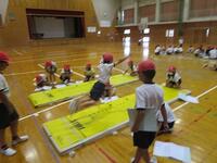 今日は体育の時間に体力・運動能力調査(体力テスト)に取り組んでいました。体力テストでは、握力、50m走、上体起こし、長座体前屈、反復横とび、20mシャトルラン、立ち幅とび、ソフトボール投げを行います。運動場では2年生がソフトボール投げを、体育館では4年生が長座体前屈と立ち幅跳びに取り組んでいました。