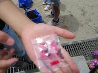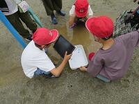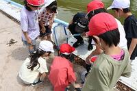 学校のプールにも生き物がいるかもしれないとプールの水の中を探しました。ヤゴやゲンゴロウなど、小さな生き物がいて子どもたちもびっくりしていました。