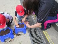 1年生が生活科の時間にアサガオの種をまいていました。植木鉢に土を入れて、たねを5つぶまきました。これから、毎日お世話をしていきます。芽が出るのが楽しみですね。
