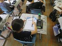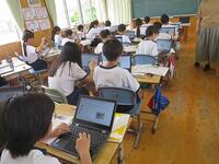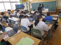 5年生は社会科の学習で米作りについて学習しています。今日は、米作りの流れをタブレットにまとめていました。画像を切り取ってはり付けたり、説明を打ち込んだりして、ノートのように米作りの様子をまとめることができていました。