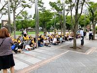雨がぱらつく空模様でしたが、子どもたちは笑顔いっぱいで出発しました。