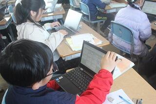 「過ちを改めることは、どうして大切なのだろう」という「めあて」のもと、すぐに謝ることができなかった主人公の心情をたどりながら、正直・誠実に生きていくことの大切さについて考えを深めていました。途中では、タブレットを活用し、お友だちの考えを共有する活動もありました。