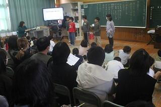 1年生では、学習したことやできるようになったことの発表がありました。多くの参観者の前で、堂々と発表する姿には、成長を感じさせられます。最後は、「ビリーブ」を合唱するなど、盛りだくさんの発表でした。