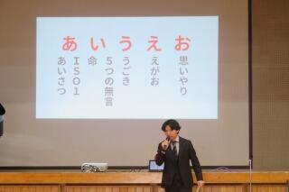 生徒指導主事の先生からは、楽しく安全な学校生活のための合言葉「あ・い・う・え・お」の話がありました。