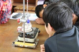 熱せられる水と温度計の変化に集中し、「あ!水の中に泡が出てきた!」「もうすぐ80℃に届きそう!」と、あちこちで驚きや発見の声が上がっていました。