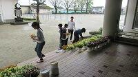 今日は、13日の月曜日に向けて入学式の準備がありました。 6年生がシートを敷いたり椅子を並べたりと一生懸命に動き、午後からは5、6年生が花を並べたり看板に花を付けたりする作業をしてくれました。
