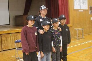 森選手からは、キャップだけでなく、子どもたちに大きな夢や希望をいただきました。ありがとうございました。これからも、みんなで、森選手、森先輩を応援します。