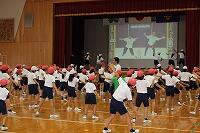 また、4年生は体育館で運動会に向けてダンスの練習に取り組んでいました。子どもたちは、ステージ上のモニターや模範演技をする児童を見ながら音楽に合わせて、元気よく一生懸命に取り組んでいました。