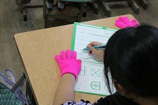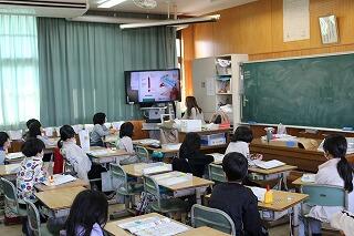 2年生が図工の時間にカッターナイフの使い方を学習していました。